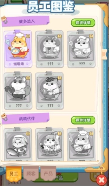测试期间,店长在图鉴中每解锁一名员工或顾客,都能领取钻石奖励;每解锁一款新产品,可获得1点体力。各位店长记得多研发新品、招募员工呀~