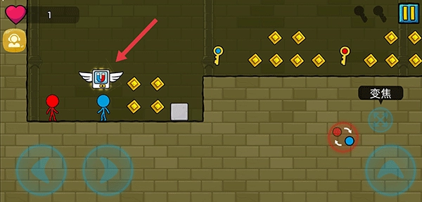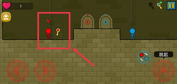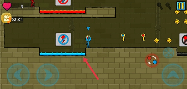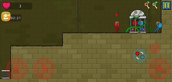 2、然后操控冰火人去收集与他们各自相同颜色的钥匙