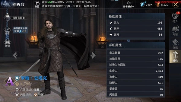 领主点击已解锁的指挥官,就能打开指挥官界面。在该界面的右侧,可以查看军阶提升的相关信息。