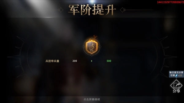 兵团的带兵数量规则如下:每当指挥官的军阶提升一级,兵团能够统领的兵力都会有显著增长。指挥官的军阶处于越高的层级,其麾下兵团可承载的兵力上限也就越大。