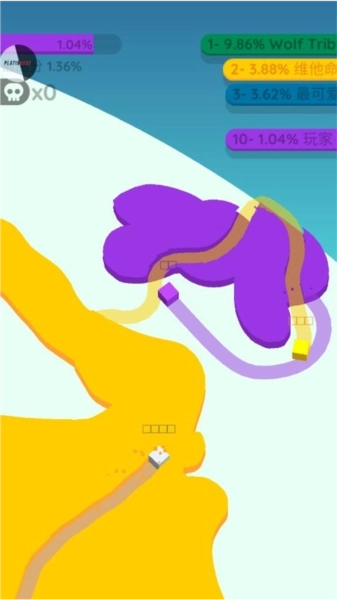 2、尝试开拓更多的领地,让你的地图范围不断扩大。在这个过程里,注意不要碰到其他纸球。