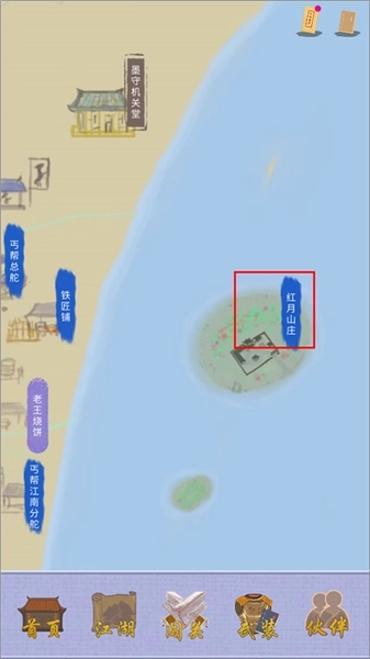 1、红月山庄位于地图最右侧,进入后即可看到红宝书,其获取方式我记不太清了,但大概率是需要支付钱财,因此充足的资金储备十分关键。