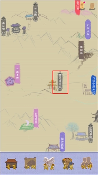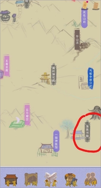 1、先进入游戏,无需选择皇族学习千军万马技能,进入地图页面后,把地图上所有区域都探索一遍,将所有能免费领取的宝箱、盒子全部领取,大概能获得6万铜币;接着前往落英书院购买一本《逍遥游》,然后进入背包界面学习该技能,并把它放置到技能栏中(落英书院的位置:地图左下角稍微往右一点的地方)。
