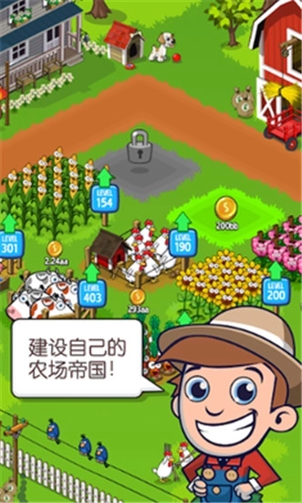 闲置农业帝国是一款模拟经营,在游戏中你将拥有一间超大的农场,你需要种植农作物的玩法来赚取黄金,从而解锁更多的土地来扩充你的农场面积,利用黄金来投资更多的农业项目,你将会是世界上最酷炫的农民!这里有猪、牛、鸡、玉米、土豆等等你在农场经营里所需所想的一切,让你的朋友也一起来农场里当帮手,一边玩耍一边发现《闲置农场》里更多的乐趣吧!