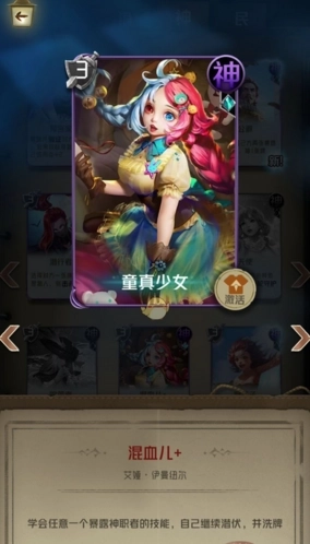 复制技能的机制是:可将其复制为己方的暴露神职牌,复制完成后自身进入潜伏状态。尽管该技能存在仅能复制暴露神职卡牌的限制,但强化后的效果能够触发洗牌操作。2点的信用值设定相对较低,作为一张具备实用价值的复制类卡牌,它能够帮助己方阵容进一步巩固优势。