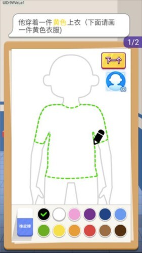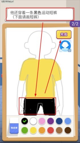 2. 根据所描述的穿着特征把它画出来。