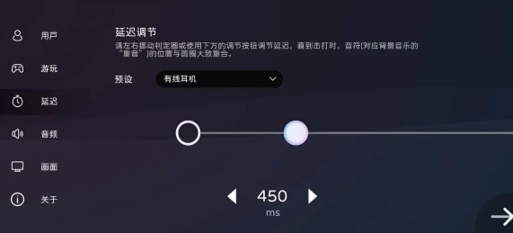 在预设选项可以选择使用音频播放设备,不同设备的延迟会单独保存,用于在各种场合灵活使用设备。