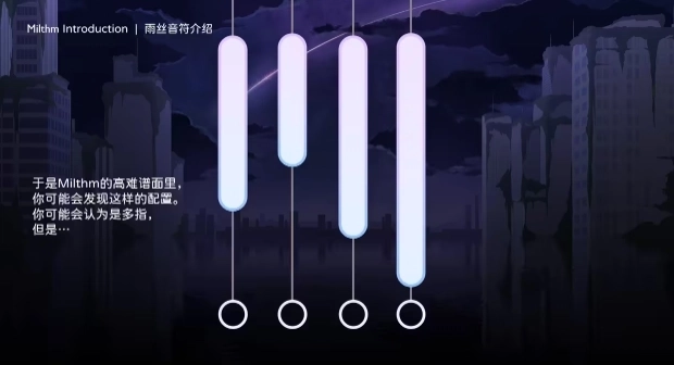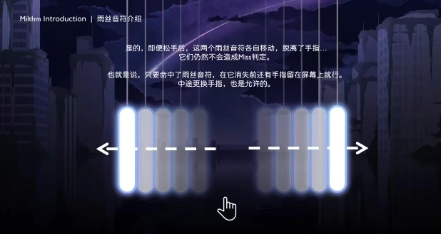 4、当你命中一个雨丝音符后,即使它脱离你的手指,也不会造成Miss判定。(除非你松开了手)