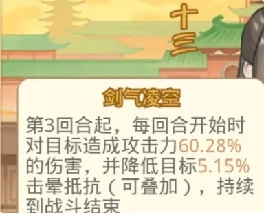 十三能将自身的击晕能力运用得更出色,还能削减敌方的击晕抗性,关键在于这种效果可以叠加。后期战斗往往要持续十几个甚至二三十个回合,这时叠加的优势就会充分显现,能让对手长时间处于眩晕状态。除此之外,十三还能辅助主角对敌人造成伤害,可谓一举两得。