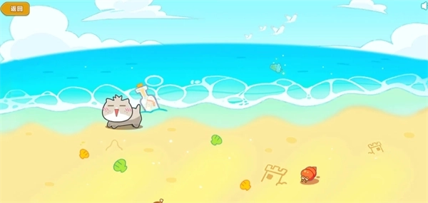 2、在花园和小猫做游戏,捡垃圾(获得车票,货币,红鲷鱼),这三个概率差不多