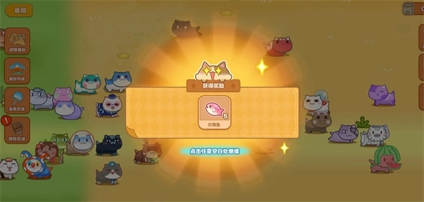 3、给小猫梳毛玩逗猫棒,很大概率的获得猫毛和红鲷鱼哦!!还会提升好感升级