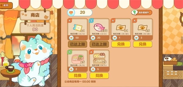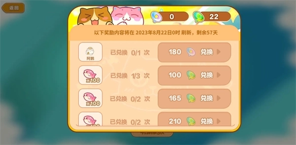 5、图鉴,角色与家具!收集到猫猫和主题就可以兑换红鲷鱼,但是是一次性的