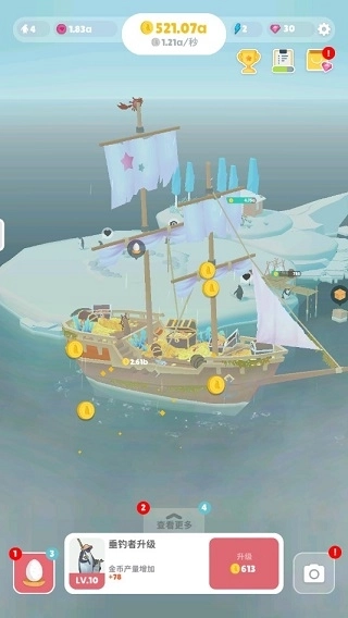 3、阿德利企鹅已成功解锁,金币与爱心的产出量提升至原来的2.5倍。
