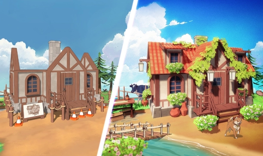 2、对岛屿上的房屋进行建造与翻新,等它们焕然一新后,相信你的心情也会随之变好哦。