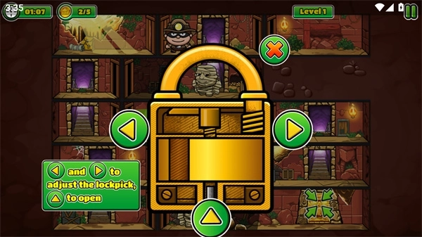 神偷鲍勃5(BobTheRobber5)作为神偷鲍勃游戏系列的全新续作,是一款极具趣味性的休闲益智闯关游戏。在玩法方面,它延续了系列前作的经典模式。玩家将化身为大家所熟悉的神偷鲍勃,独自潜入神秘遗迹,其目标是窃取里面的珍贵宝藏。
