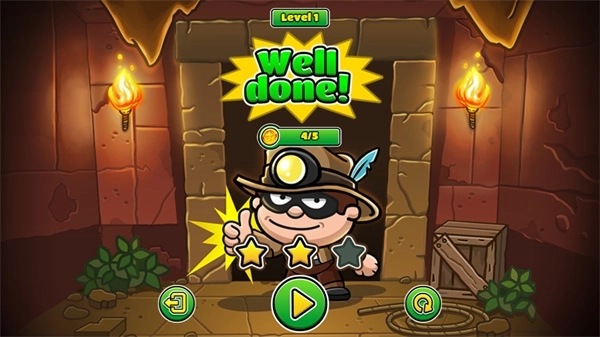 7、通关后,关卡完成的星级将依据鲍勃找到的金币数量来确定。