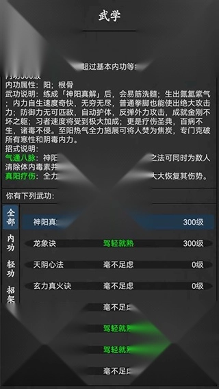 3、身怀数百种武学,可自由组合搭配,无论是拳、掌、爪、指、手、腿,还是剑、刀、鞭、枪、棍、杖,皆能随心选择。