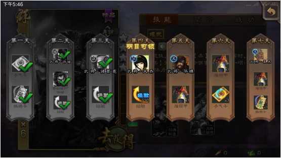 首先,游戏里存在两个华雄,一个是“一将成名”系列中的华雄,另一个则是界限突破版本的华雄。获取普通华雄的途径十分简单。从下图能看到,只需连续登录5天就能得到华雄。通过这种方式可以免费获得华雄这个武将,我们既不用消耗招募令去抽取,也不必使用将魂来合成,只要坚持登录,就能在第五天免费拿到该武将。