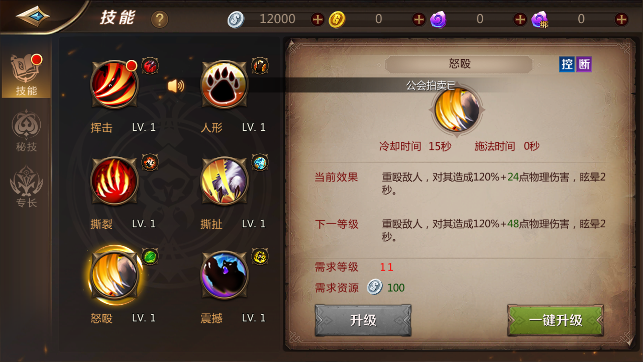 小德的核心技能,其效果为使用后会化作一头巨熊,自身的生命值与防御力会得到提升,等级越高提升幅度越大,同时还能施展野兽形态的技能。