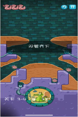 这一关难度不大,但关键是要分清楚水管!只有右边的水是通往小鳄鱼洗澡处的!只需留一小部分水给左边的小鸭子(不用挖开下面的土),其他水流到下方后,记得先点亮小鸭子,再给小鳄鱼洗澡,最后就能通关啦~