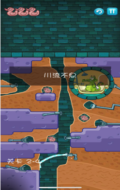 川流不息是这几关中比较简单的一关了~!只需要依此挖开水渠就行,值得一提的是最上方的小鸭子点亮一定要先挖开左边土点亮后再挖开右边。否则很容易拿不到满星游戏就结束了。