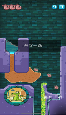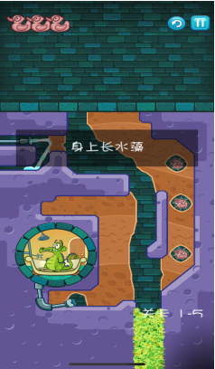 第四关开始出现海草~要注意的是如果水碰到海草就会变成更多的海草!小鳄鱼就无法洗澡啦!所以为了成功通关,必须让水有弧度的顺着小鸭子的轨迹,这样就可以在满星的情况下通关了!