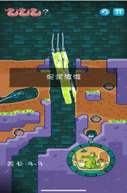 在游戏前会有一段小动画,并且配有教程~第一关是最为基础的一关,只要顺着小鸭子的轨迹挖开土层,水流到浴室的管道口,就可以给小鳄鱼的洗澡啦~