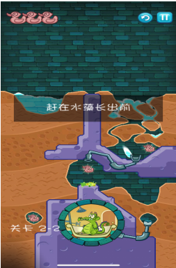 第七关可以说是目前最难的一关了,就像本关的名字,一定要在水流向海草,海草长出之前把水送到水管处!如果还要拿到三只小鸭子,是需要反复几次才能通关的。