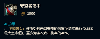 守望者铠甲的伤害减免效果从原先的0.5%最大生命值调整为5点基础值加0.35%最大生命值,这一改动显著增强了携带者的抗伤能力,使得AD英雄在对抗坦克时的处境变得更加艰难。