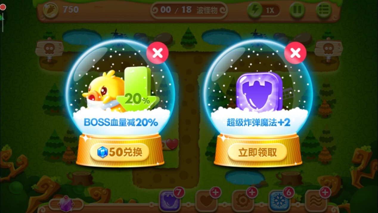 话不多说,咱们直接开始游戏。开局会给两种道具,选右边那个免费的就行。仔细看看这张地图,能发现怪物的分布路线是个“丁”字形,左右两边各有一个刷怪点,所以怪物的数量会比较多。