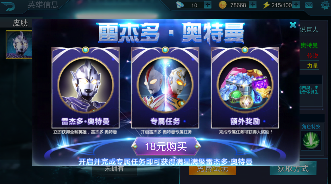很多人可能会觉得,不就是升级嘛,直接用大量奥特核心堆上去不就行了?但实际上,等你真的用海量奥特核心硬砸完,了解到真正的升级方法后,恐怕得后悔到掉眼泪。因为你购买这位英雄后,他会解锁专属任务,只要完成这些任务,就能直接获得满星满级的雷杰多奥特曼——比起用奥特核心硬堆,这种方式既能帮你省下不少钱,还能体验新的任务玩法,简直是一举两得,何乐而不为呢?