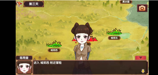4、到了13年9月,玩家需要再次规划一次外出冒险的行程,只要在城外的任意场景都能遇到墩儿,并触发和她的聊天事件。(需要注意的是,触发这个剧情的前提必须是好感度超过30,并且已经触发了前面提到的相关剧情)