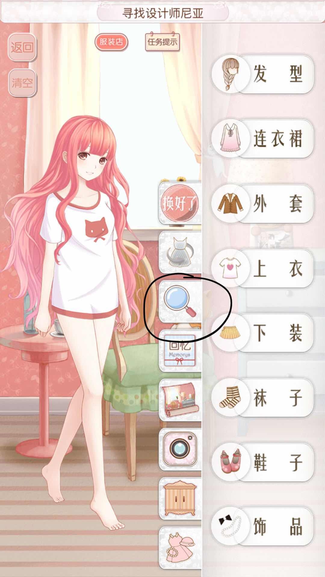 4、有的小伙伴衣服太多,一时半会儿找不到想穿的那件怎么办?别着急,今天小编来分享一个快速找衣服的小技巧——点击旁边的放大镜图标,输入衣服名称,就能一秒精准定位到它啦!!