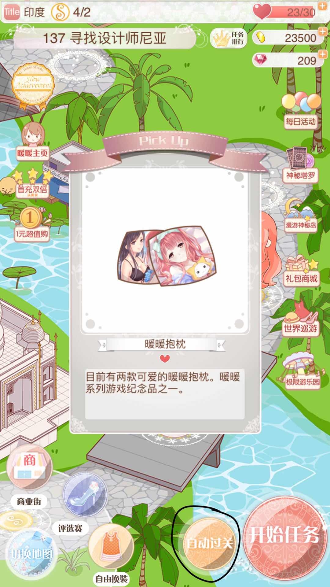 6、有朋友问为什么自己只拿到了金币奖励,其他什么都没得到?别担心,大家可以先回到主页面,点击右下角的“自动过关”,这样就能跳过穿搭环节直接获取最终奖励啦,相信多尝试几次就能拿到金币之外的其他奖励了。