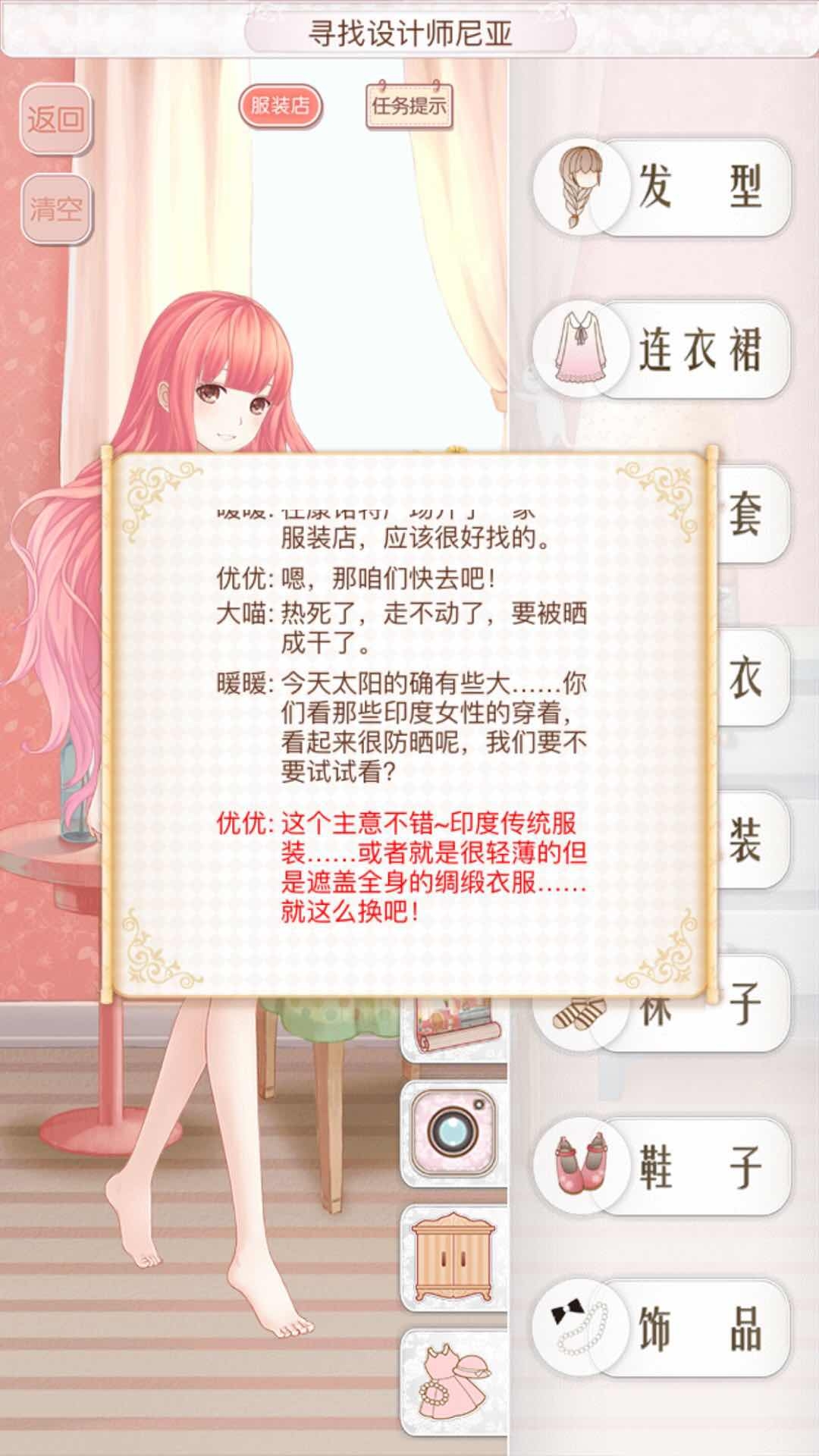 这一关的情况是,原本计划去康诺特广场选购衣物,可外头的太阳实在太毒辣,所以希望能穿上那种质地轻薄、同时又能把全身都遮盖住的绸缎材质衣服。既然有了这样的提示,那我们后续的搭配就朝着这个方向来进行就好啦。