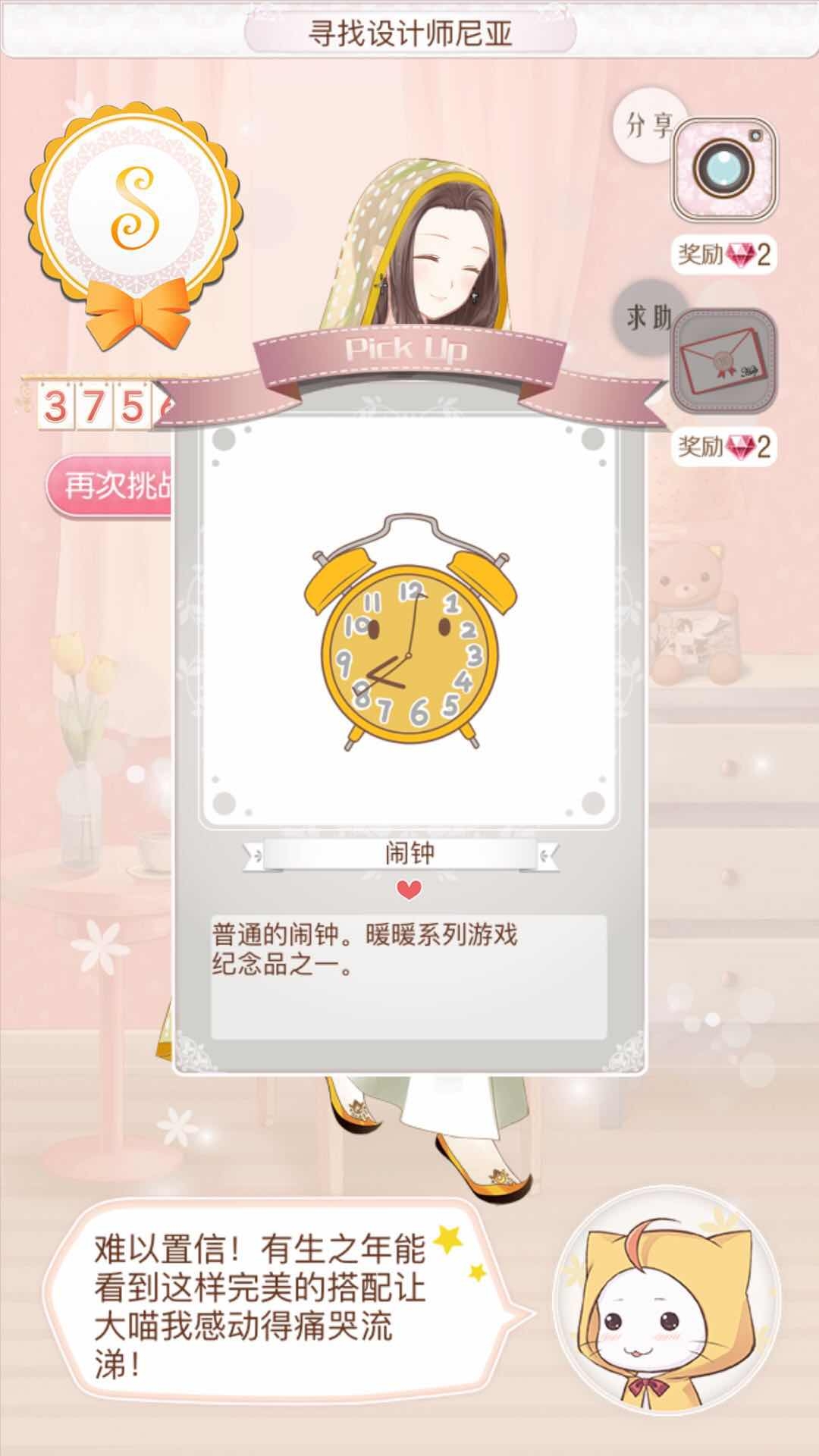 5、说回正题,我这套搭配最终拿到了3万7千多分,还获得了S评级,除此之外,也得到了不少奖励,包括金币、闹钟(礼品)、锦花绣草之类的。