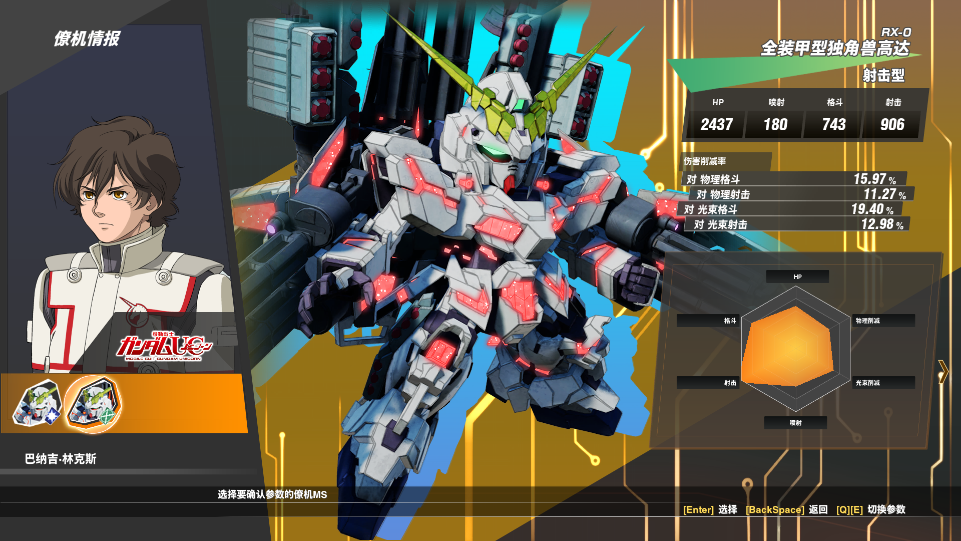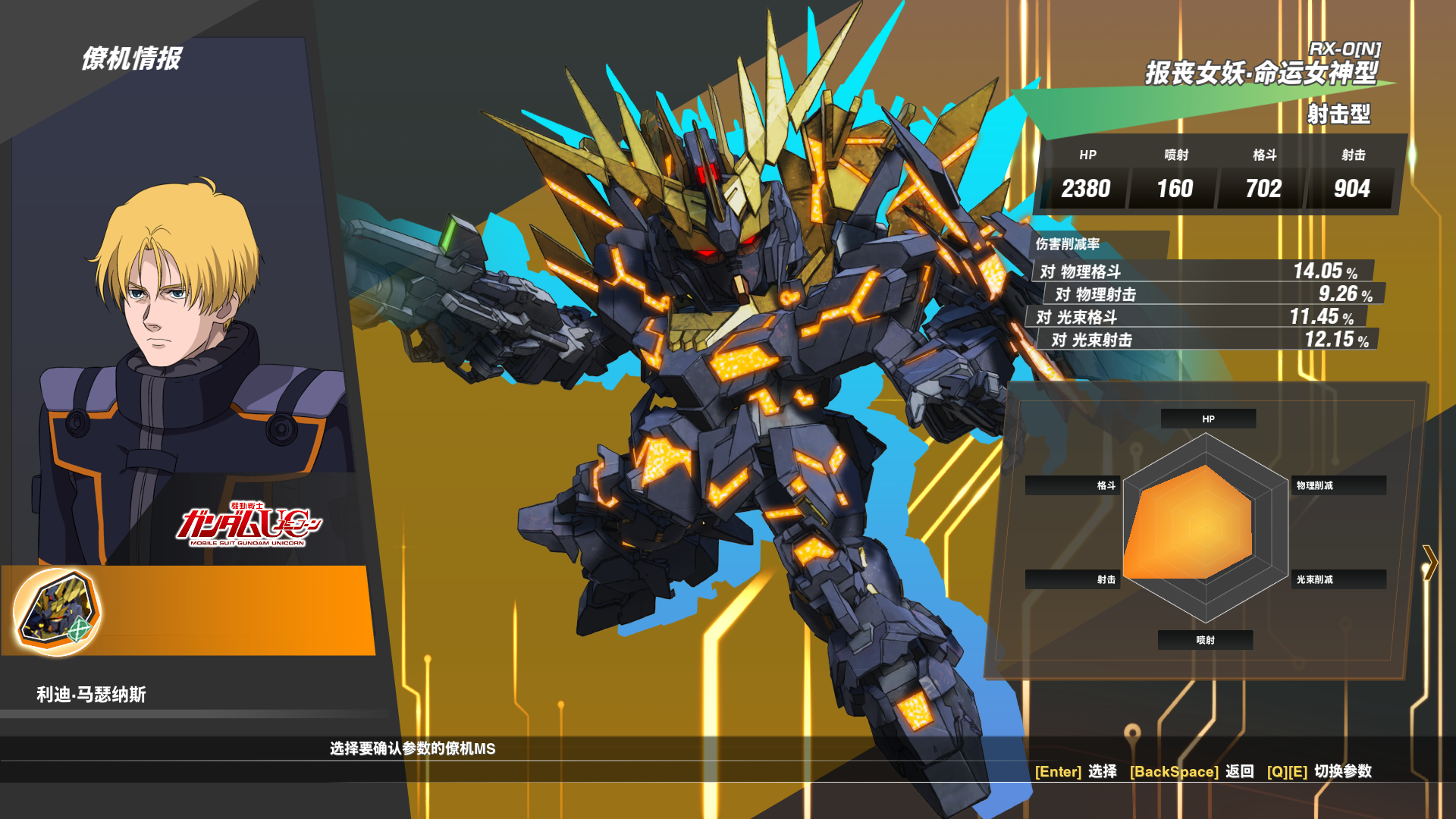 全能型在这个游戏里堪称万金油般的存在,虽说各项数据都不算特别拔尖,却是最容易上手的机型。游戏前期能获取的全能型高达有曹操异端型、RX78-2元祖高达和RX93ν高达,它们的修理包自带4个,比射击型少一个;血量比不上格斗型,射击能力也不如射击型突出。不过这类机型的操作手感比较顺滑,如今玩家们热衷的高达机型里也有不少是全能型的——它属于样样都不顶尖,却又样样都沾点边的类型,我个人对这种机型其实不太感冒。