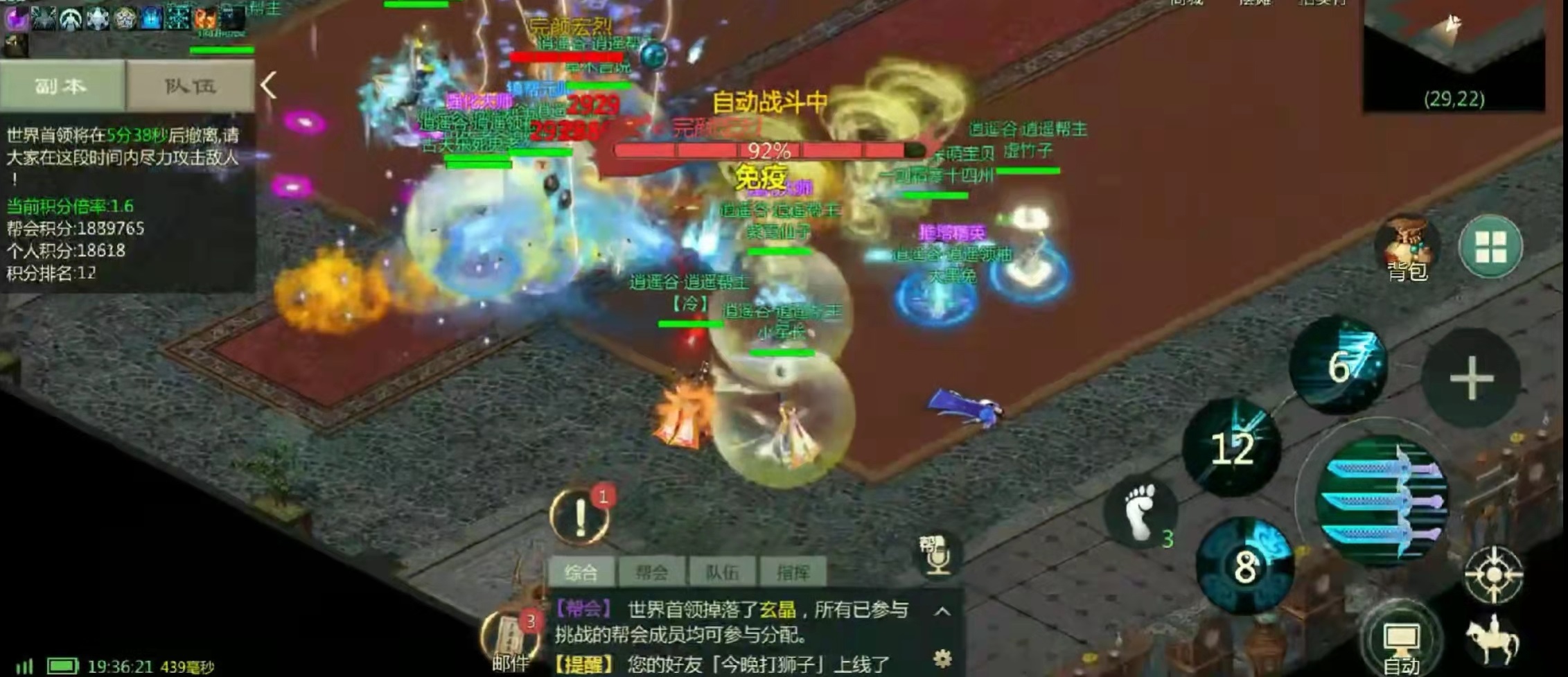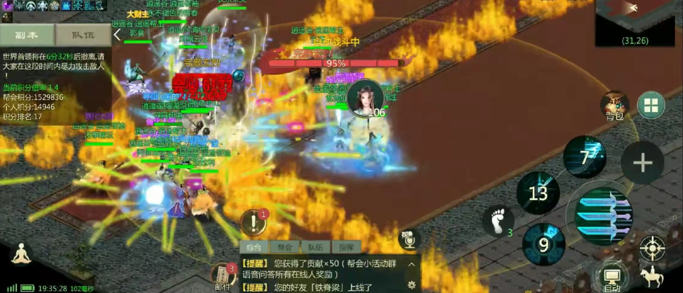 世界首领的技能各有不同,但释放轨迹大致相似,这里以难度最高的完颜洪烈为例,介绍躲避技巧。他的首个技能是“燃烧”,会在大范围区域降下火雨,被命中的玩家会直接阵亡,这类技能属于大范围瞬秒型,唯一的应对方法是迅速跑至技能范围外,躲在角落即可。拉BOSS的玩家尽量将世界首领拉到场地中间,这样能方便所有人躲避技能。