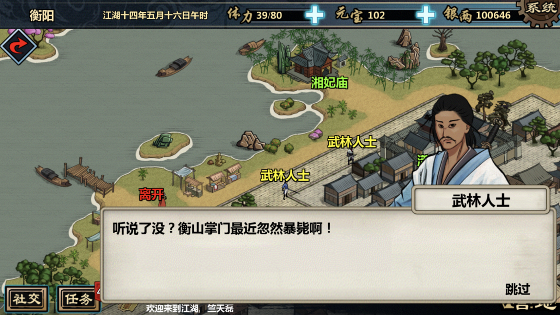 当衡阳出现剧情叹号后进入衡阳城,你会看到城中多了不少武林人士,从他们的交谈中得知衡山派掌门突然暴毙,这消息让城里人心惶惶。