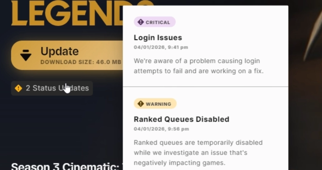 拳头游戏已通过官方社交媒体渠道对此次情况进行了公开确认。在故障发生期间发布的声明里,官方指出:“我们已经察觉到一个正在对游戏造成影响、并且阻碍部分玩家登录的问题。在修复工作完成之前,排位队列会暂时关闭,感谢各位的耐心等候。”这份声明显示,此次问题并非个别的偶然情况,而是需要马上处理的系统性故障。