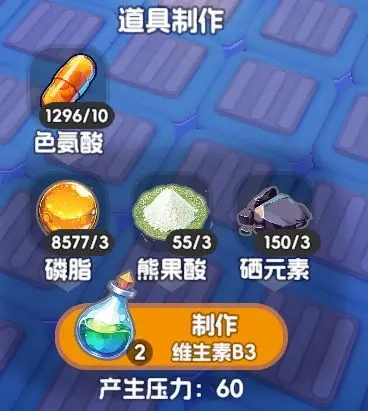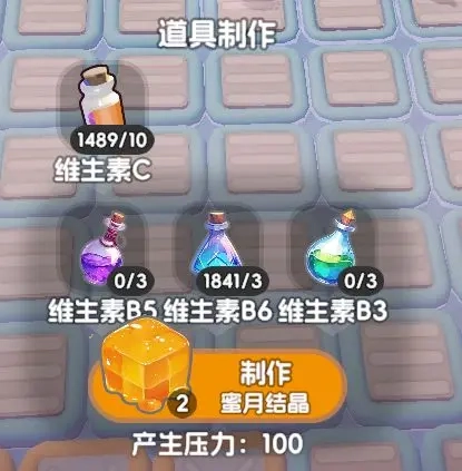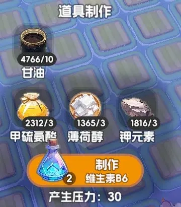 “蜜月结晶”“绿野迷踪”“雪人心脏”是本次任务的最终交付成果,生产过程需消耗10份VC/VD/VA以及3份B5、B6、B3。尽管它们的生产效率偏低,但单次产出所带来的总压力值相当可观。眼下恰逢元旦“材料生产双倍”活动开展,这是显著压缩任务耗时的绝佳契机。因此建议在此期间暂时搁置其他生产线的运作,整合全部资源投入支线材料的生产冲刺,并提前备足压力恢复类物品以应对需求。