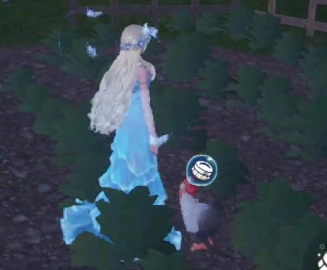 2、接着缓缓向动物靠近,等到动物身上显示出如下这个清洁图标,松开清洁按钮即可。