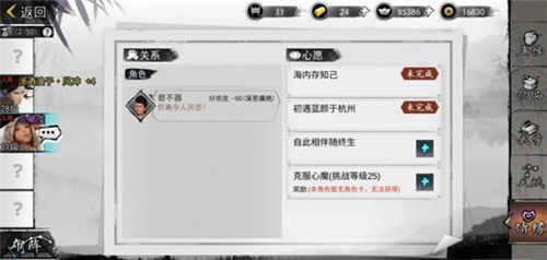 当各位大侠把某个角色的好感度提升到99,并且解锁全部心愿奖励之后,就能够领取【好感突破】任务。完成此任务,好感度就能提升至100,在这个时候,大侠们就可以与该角色结义或者誓约啦~