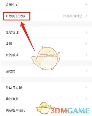 2. 进入“我的”界面,点击【升级到企业版】选项。