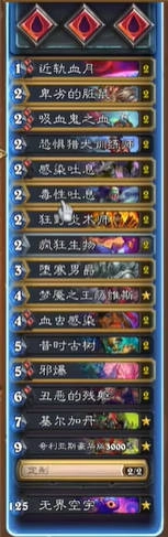 2. 近轨血月能够贴给炎术士或者昔时古树,卡组到了后期依旧是依靠鸡蛋来获取胜利。