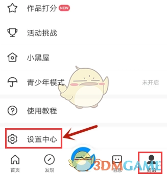 2、随后在我的界面里找到“设置中心”这一选项,点击该选项,紧接着便会进入设置界面。
