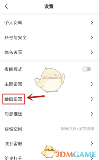 3、于“设置”界面中,点击“绘画设置”选项,从而进入“绘画设置”界面。