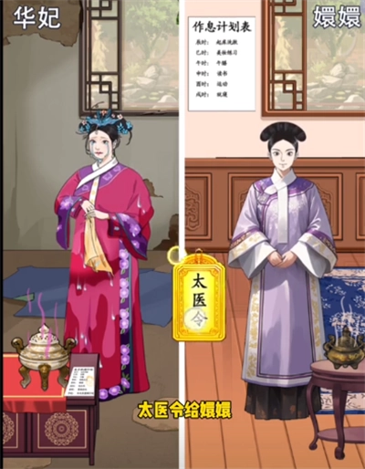 5、把【龙子扶持计划】给到华妃,将【作息计划表】给予嬛嬛。