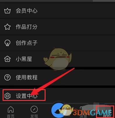 2、在主界面右下角找到并点击“我的”选项,随即进入个人中心界面,然后点击“设置中心”选项,进而进入“设置”界面。