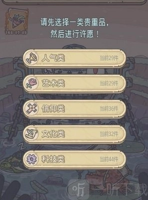3、于许愿炉里,挑选期望获取的贵重品类别。